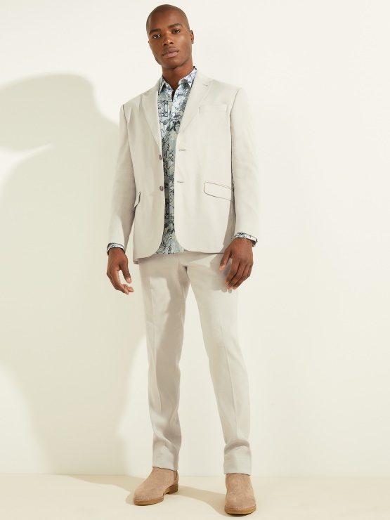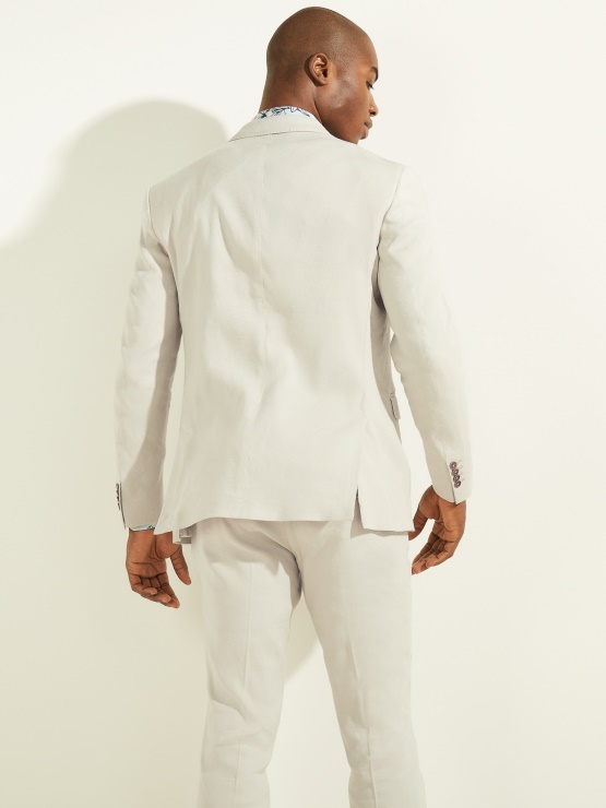 Idealen Za Vroče Vremenske Priložnosti, Ta Lahek Blazer Iz Mešanice Lanu Ima Zarezan Ovratnik, Zapenjanje Z Dvojnimi Sprednjimi Gumbi In Zaobljene Spodnje Robove. Dopolnjujejo štirje Notranji žepi In Svilnata Podloga.