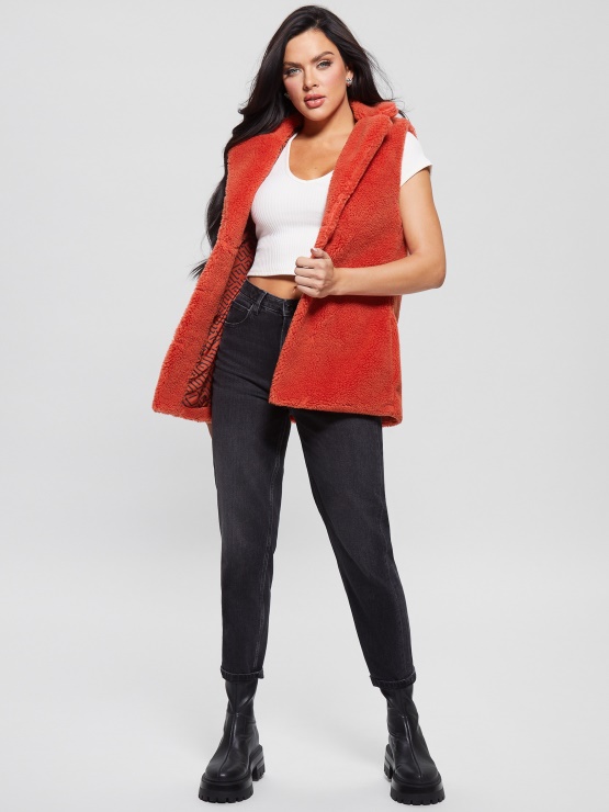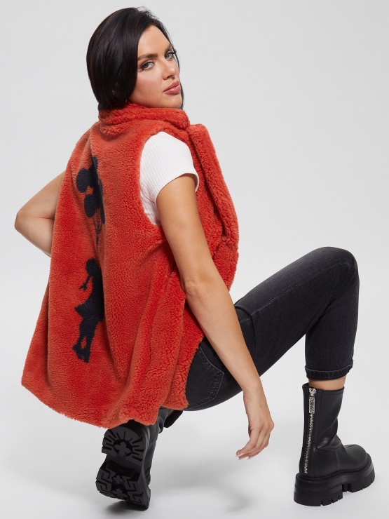 Telovnik S Parangalom, Oblikovan Iz Mehkega Teddyja, Z Zarezanim Prepognjenim Ovratnikom In Pletenim Grafičnim Dizajnom Na Hrbtu. Svilnata Notranja Podloga, Stranski žepi In Skrita Sprednja Zapenjanja Na Kaveljčke In Očesa.