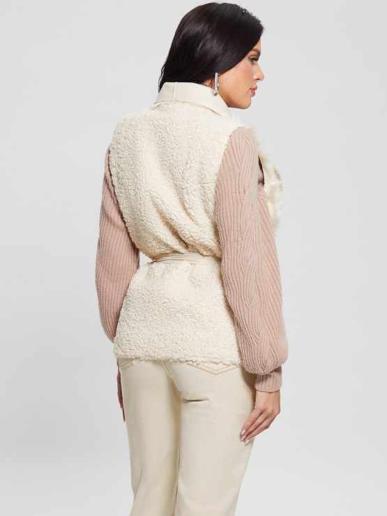 Stilizirajte Svoje Obleke Za Hladno Vreme S Tem Glamuroznim Telovnikom Iz Umetnega Krzna Za Vsestransko Nošenje. Predstavljen V Daljši Silhueti Z Ohišjem Iz Umetnega Krzna In Obrnljivo Stranjo Iz Gladkega Umetnega Semiša Z Vključenim Samozavezujočim Pasom.