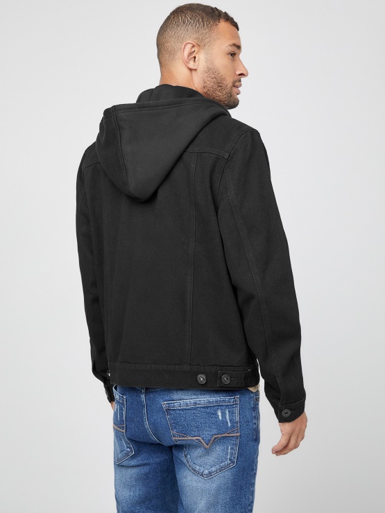 Ta Denim Jakna, Ki Je Bistvena Plast, Ima Dvojna Prsna žepa, Zapiranje Na Sprednji Strani Z Gumbi In Pritrjeno Kapuco Z Zapiranjem Na Vrvico.