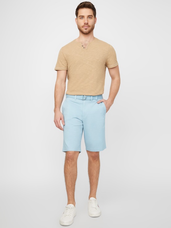 Ležerna Klasika, Ta Par Raztegljivih Tkanih Kratkih Hlač Ima Ravno Sprednjo Zasnovo, Pas Z D-obročkom, Sprednje Natikače In Zadnje žepe Z Robom.