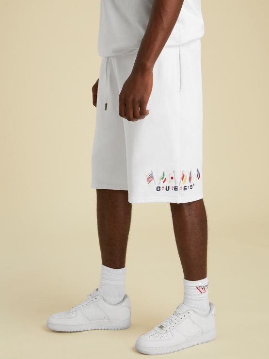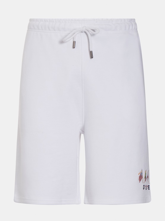 Guess Kratke Hlače Z Vrvico Z Logotipom Bele