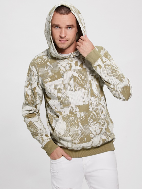 Alberico Model Kolaž Pulover S Kapuco Allover Udarno Siva Guess
