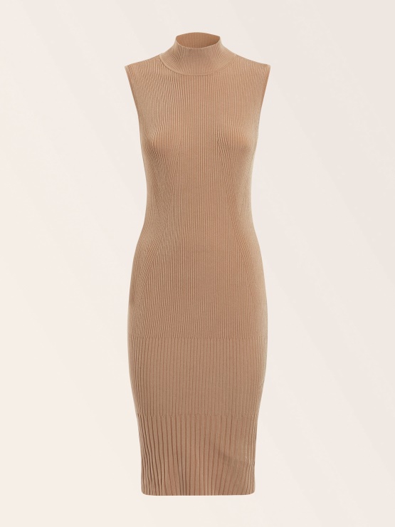 Bež Guess Pletena Obleka Z želvastim Izrezom Marciano