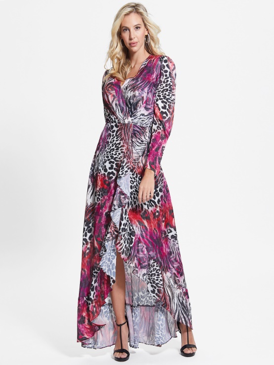 Sprostite Romantiko Ta Večer V Tej Nagubani Satenasti Maksi Obleki Z Mehkim Izrezom Z Naborki, Modernimi Gigot Rokavi, Dolgim tulipanastim Robom Z Naborki In Skrito Stransko Zadrgo. Vsebuje Reciklirano Plastiko.