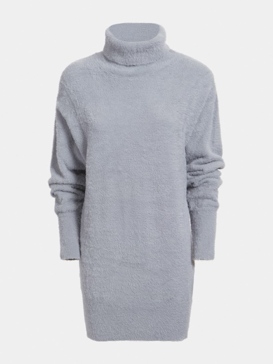 Siva Pletena Obleka Guess Z Visokim Ovratnikom