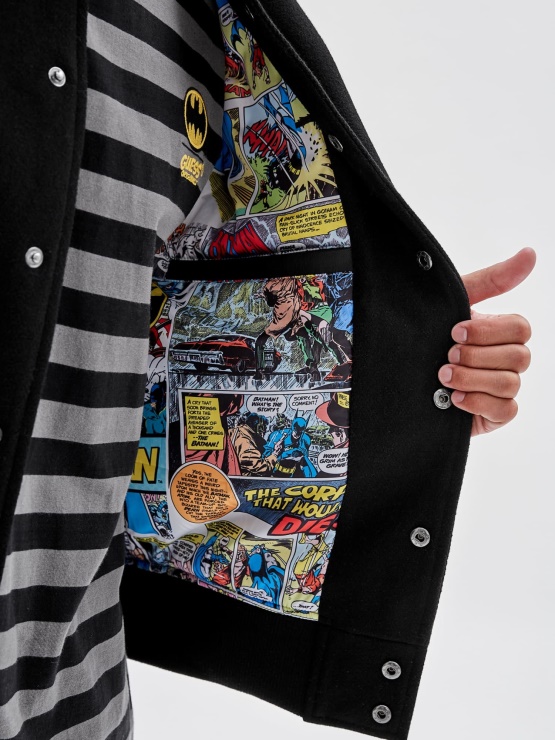 detajli Tkanine: Vezen Batman Našitek Spredaj, Zadaj In Na Rokavih.