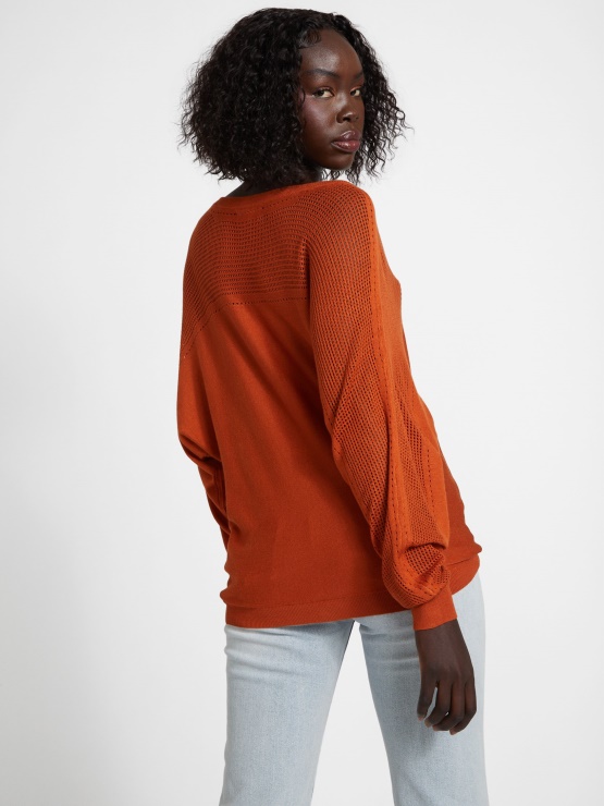 Za Tiste Nekoliko Hladnejše Dni Posezite Po Tem Puloverju S Perforiranimi Jarmi In Dolman Rokavi, Ladjastim Izrezom In Logotipom Iz Kamenčkov.