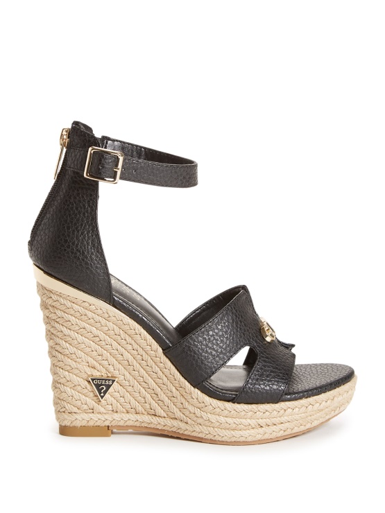 Ljubek Dodatek K Vsaki Obleki. Ti čevlji Imajo Peto Z Espadrilami, Odprtim Mandljevim Prstom, Nastavljivim Paščkom Za Gleženj, Emblem Z Logotipom Na Vampu In Zadnjo Zadrgo.