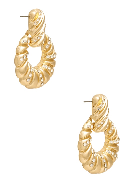 podajte Izjavo S Temi Zlatimi Uhani, Oblikovanimi V Silhueti Vratnega Trkalca, S Teksturo Rogljičkov S Poudarki Iz Kamenčkov