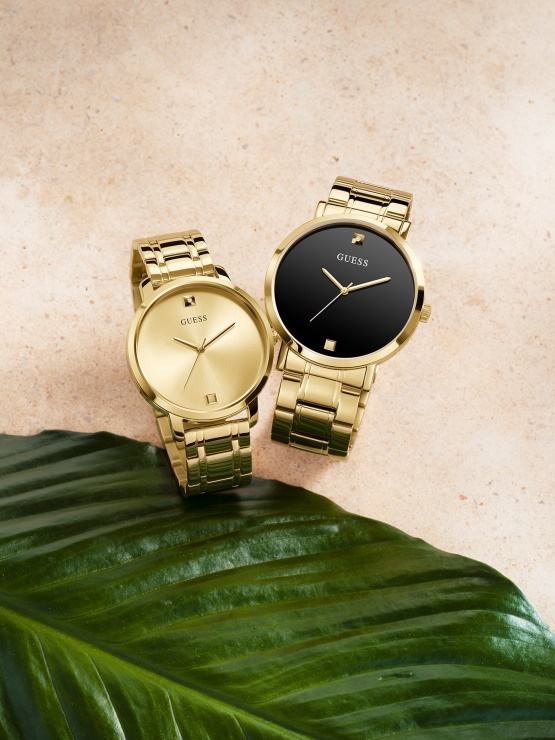 Analogna Ura Gold Guess Z Zlatim Zmanjšanjem In črnim Diamantom