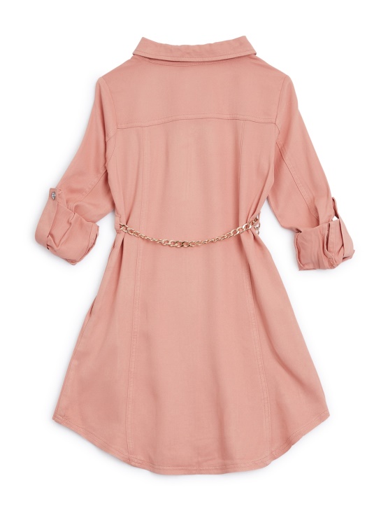 Eleganten Slog, Ki Popestri Njihovo Omaro, Je Ta Srajčna Obleka Zasnovana Z Zavihanim Ovratnikom, Detajlom Logotipa Z Okrasnimi Kamni, Zapiranjem Na Zadrgo Spredaj In Priloženim Pasom Z Verižico V Pasu. Skupaj Z Dolgimi Rokavi Z Zavihki Za Navijanje.